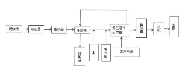 等離子體分解法是在外加電場的作用下,介質(zhì)放電產(chǎn)生的大量攜能電子轟擊污染物分子,引發(fā)了一系列復(fù)雜的物理、化學(xué)反應(yīng),從而使污染物得以降解去除的一種廢氣治理方法。工藝流程圖如下: