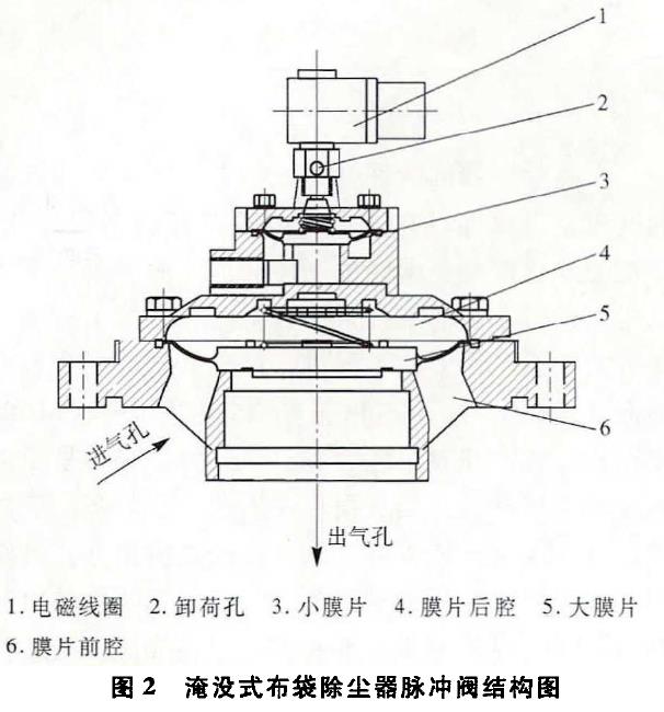 淹沒式脈沖閥的工作原理與直角式脈沖閥基本相同。由于淹沒式脈沖閥的結(jié)構(gòu)形式不同,在使用過程中減少了通過脈沖閥的壓力損失。這種結(jié)構(gòu)降低了除塵器對氣源噴吹壓力的要求。所以淹沒式脈沖閥更適合壓力較低的場合。另外,淹沒式脈沖閥也能降低能源消耗并延長脈沖閥膜片的使用壽命。這也是淹沒式脈沖閥得到廣泛應用的重要原因。