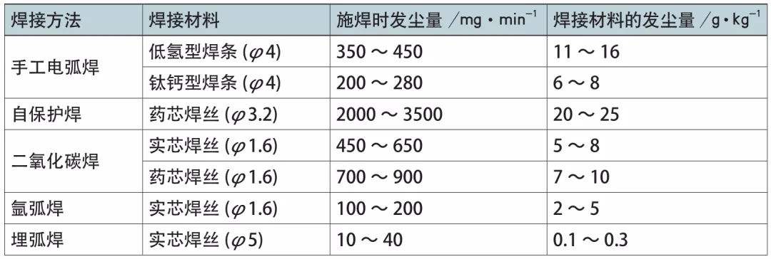 金屬加工的材料特性及工藝需求會產(chǎn)生大量的粉塵和煙氣,是生產(chǎn)車間的主要空氣污染物來源。表1所示為不同焊接方法所產(chǎn)生的污染物,大功率的激光切割、等離子切割、火焰切割等產(chǎn)生的粉塵濃度遠遠超過焊煙。