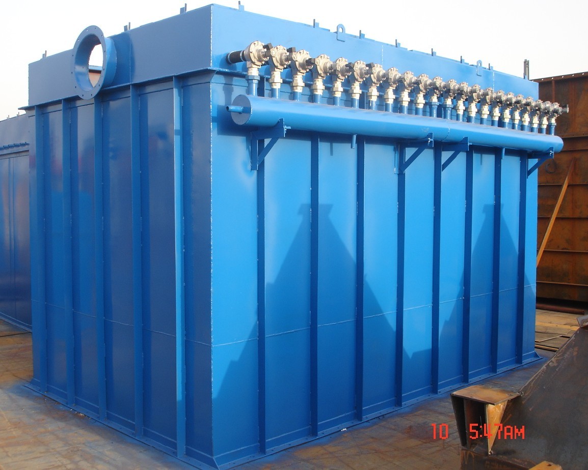 脈沖袋式除塵器由框架、箱體、濾袋、清灰裝置和壓縮空氣裝置、差壓裝置和電控裝置組成。脈沖袋式除塵器與其他袋式除塵器的主要區(qū)別是清灰裝置。